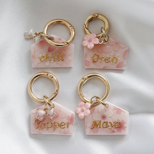 Pink Ema Sakura Cherry Blossom Pet Tag